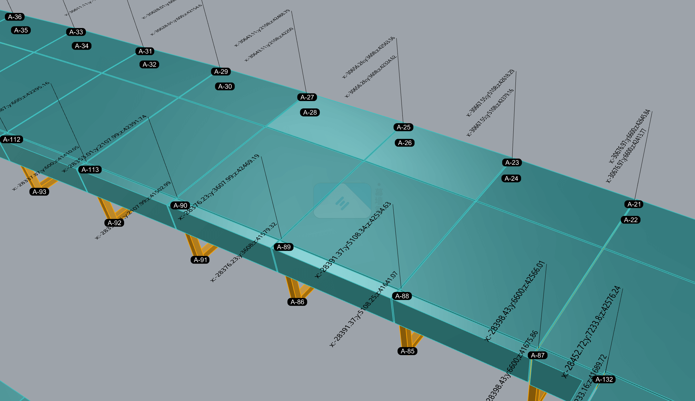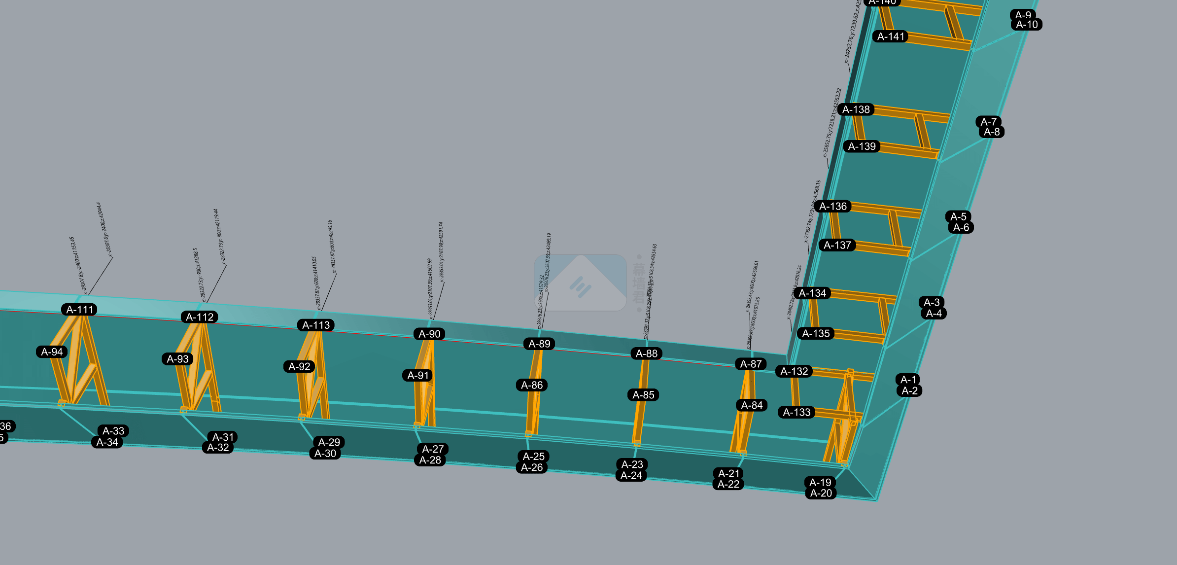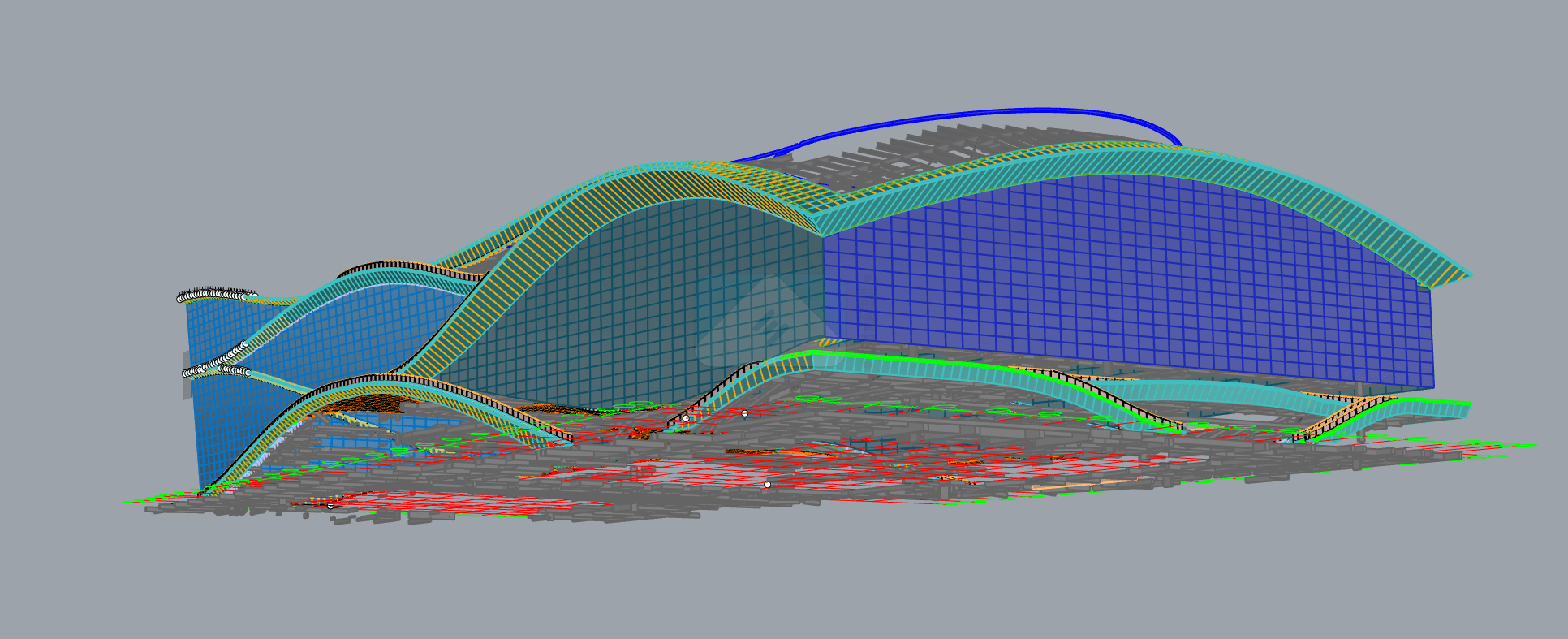 大沙河文体中心幕墙项目中铝单板为弧形飘带及檐口,幕墙铝板没有完全相同的两块,我们采用Rhino+grasshopper的方式建模,模型和现场实现1:1对应关系,面板可以直接拆图摊平发送至加工厂,龙骨按照每个分格的特征以品为单位加工,按照坐标定位安装,极大的提高了安装的准确性。